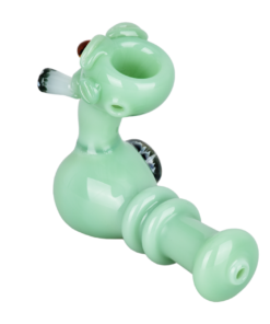 Get smoky with a fun alien friend disguised as a glass pipe! The Smokin Alien Glass Hand Pipe is crafted with alien-green glass to match the smoking alien head herb bowl and a decorative alien flower marble on the side. Measures 5 inches (12.7cm) long.